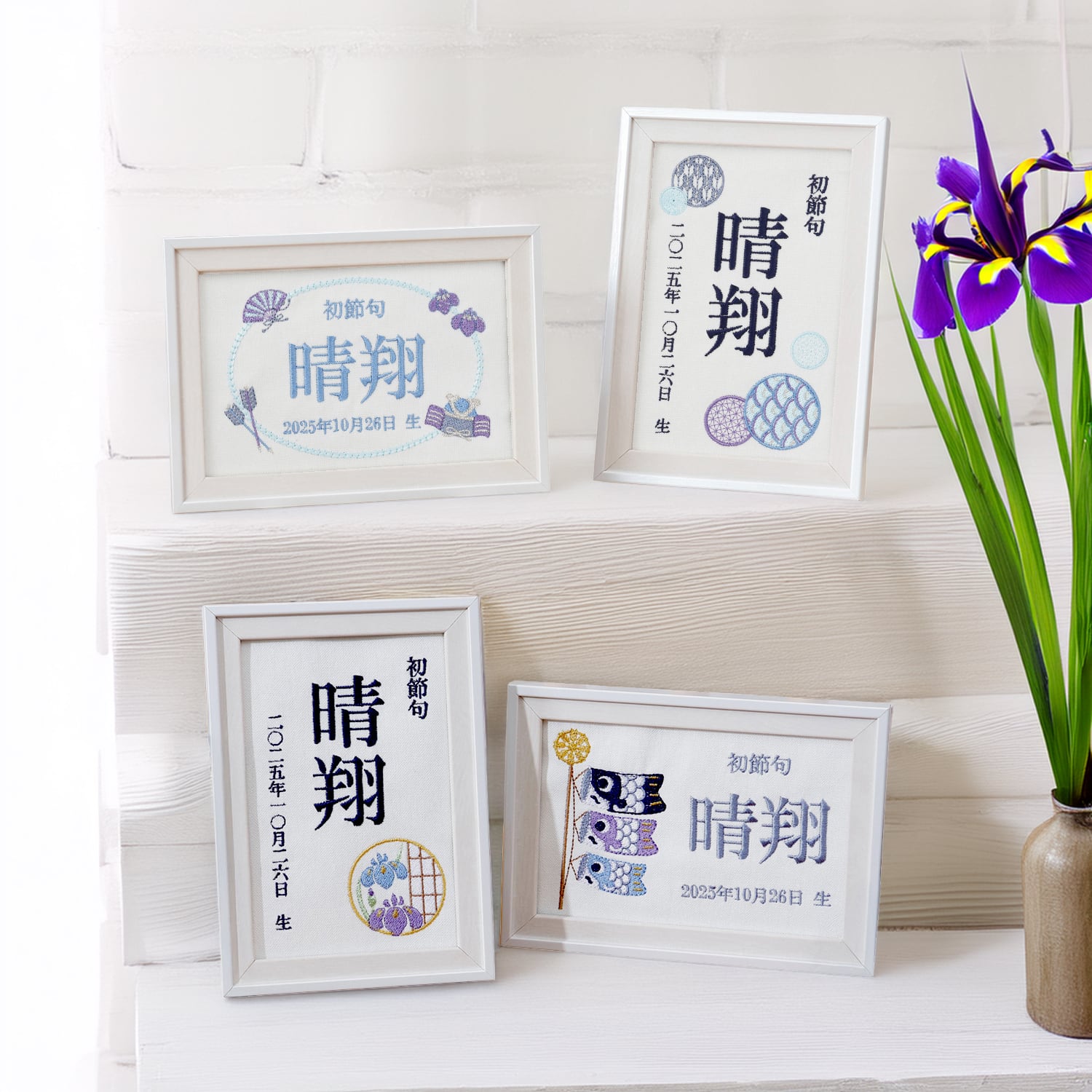 Onburt 自社手作り 世界に一つだけ 刺繍 名入れ オリジナル 節句 初節句 名前札 フレーム付き 端午の節句 こどもの日 日本製