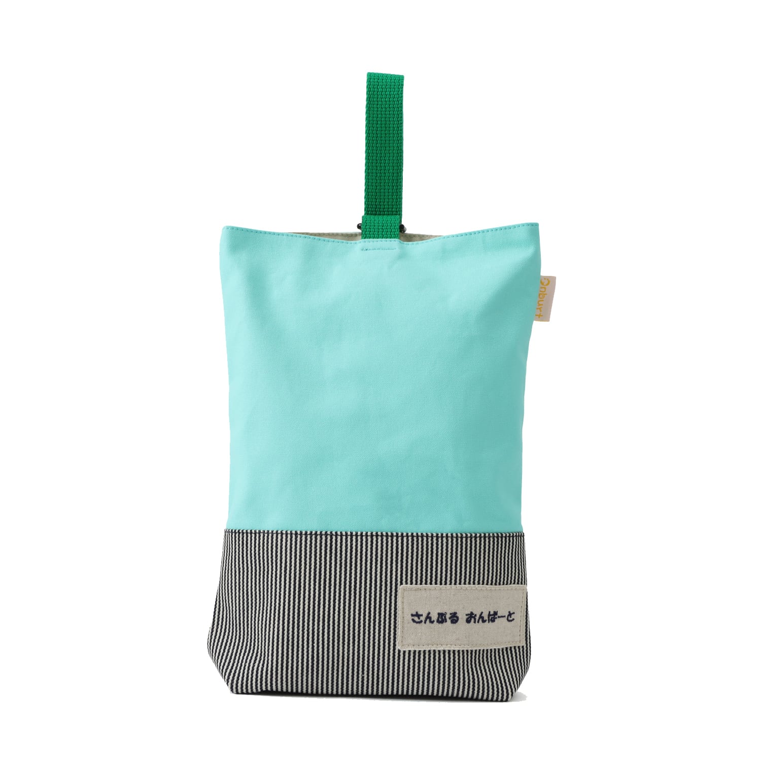 オリジナル 入学 入園 世界に一つだけ 刺繍 名入れ シューズバッグ ヒッコリー × オパールグリーン