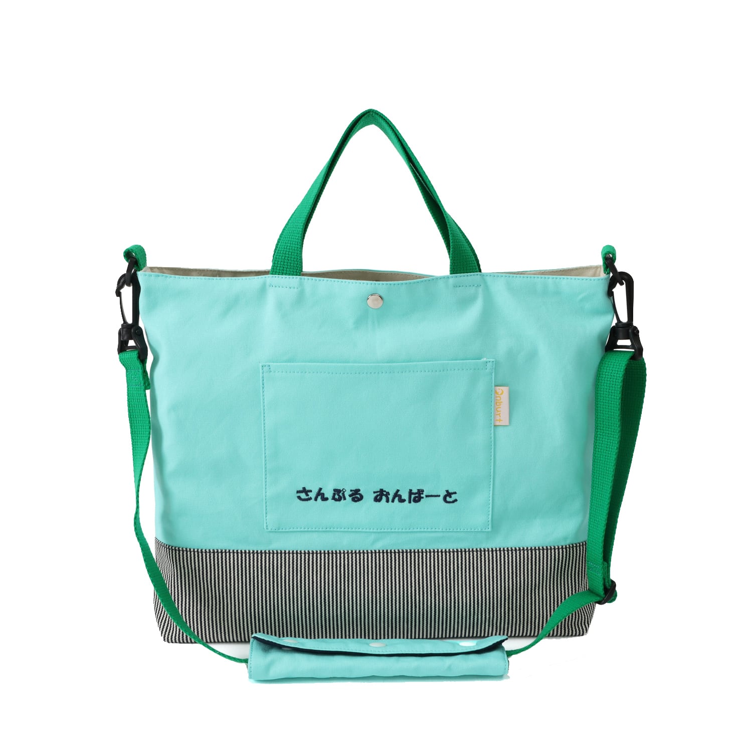 オリジナル 入学 入園 世界に一つだけ 刺繍 名入れ レッスンバッグ ショルダー付 ヒッコリー × オパールグリーン