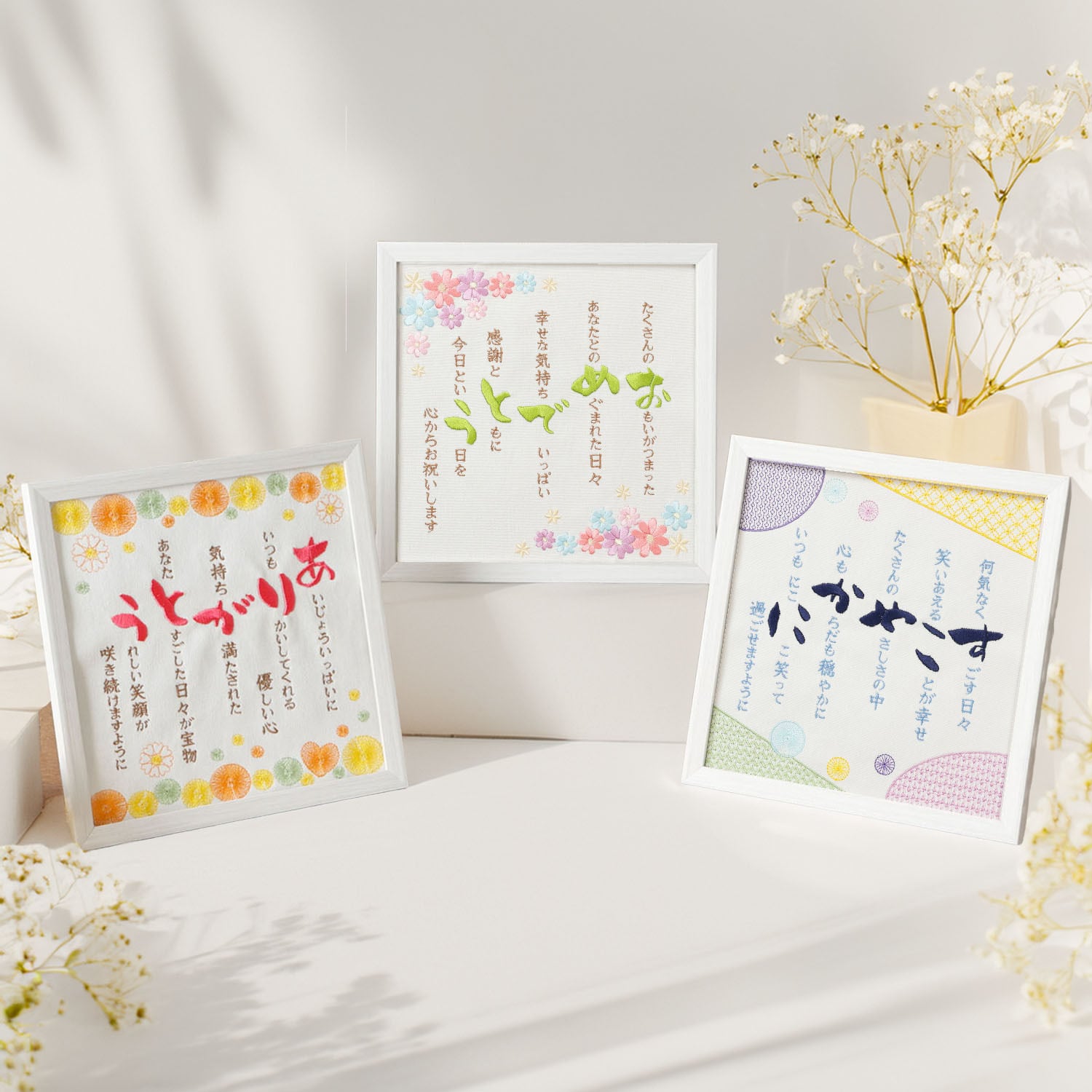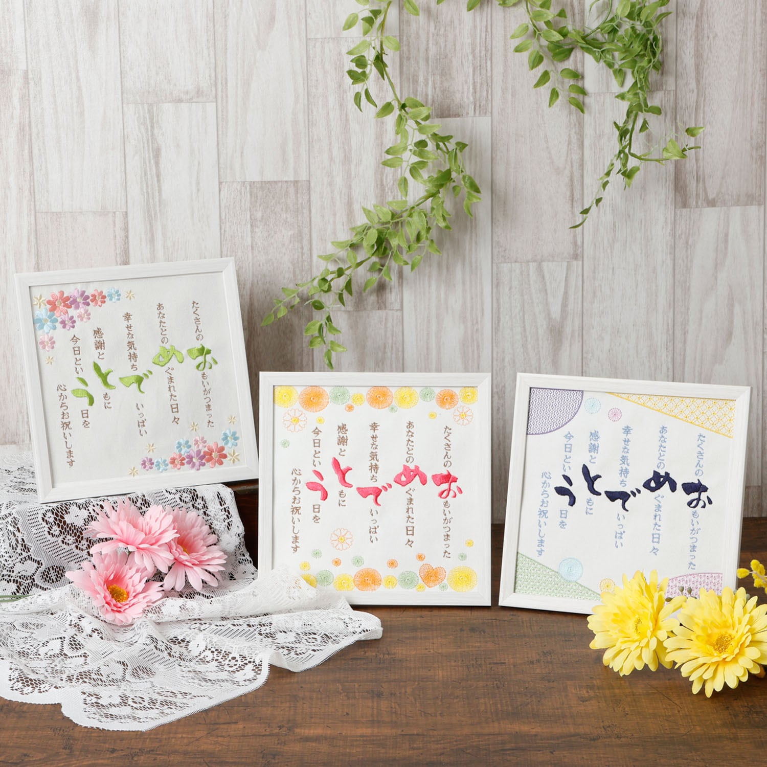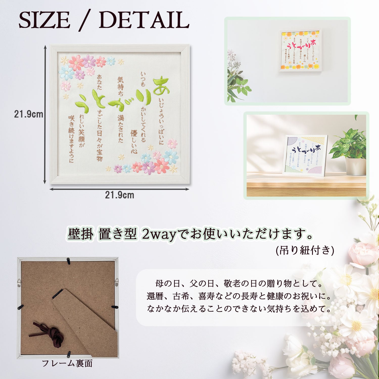 Onburt 自社手作り 世界に一つだけ 刺繍 オリジナル 感謝状 ポエム刺繍 母の日 父の日 敬老の日 長寿 祝い フレーム付き 日本製