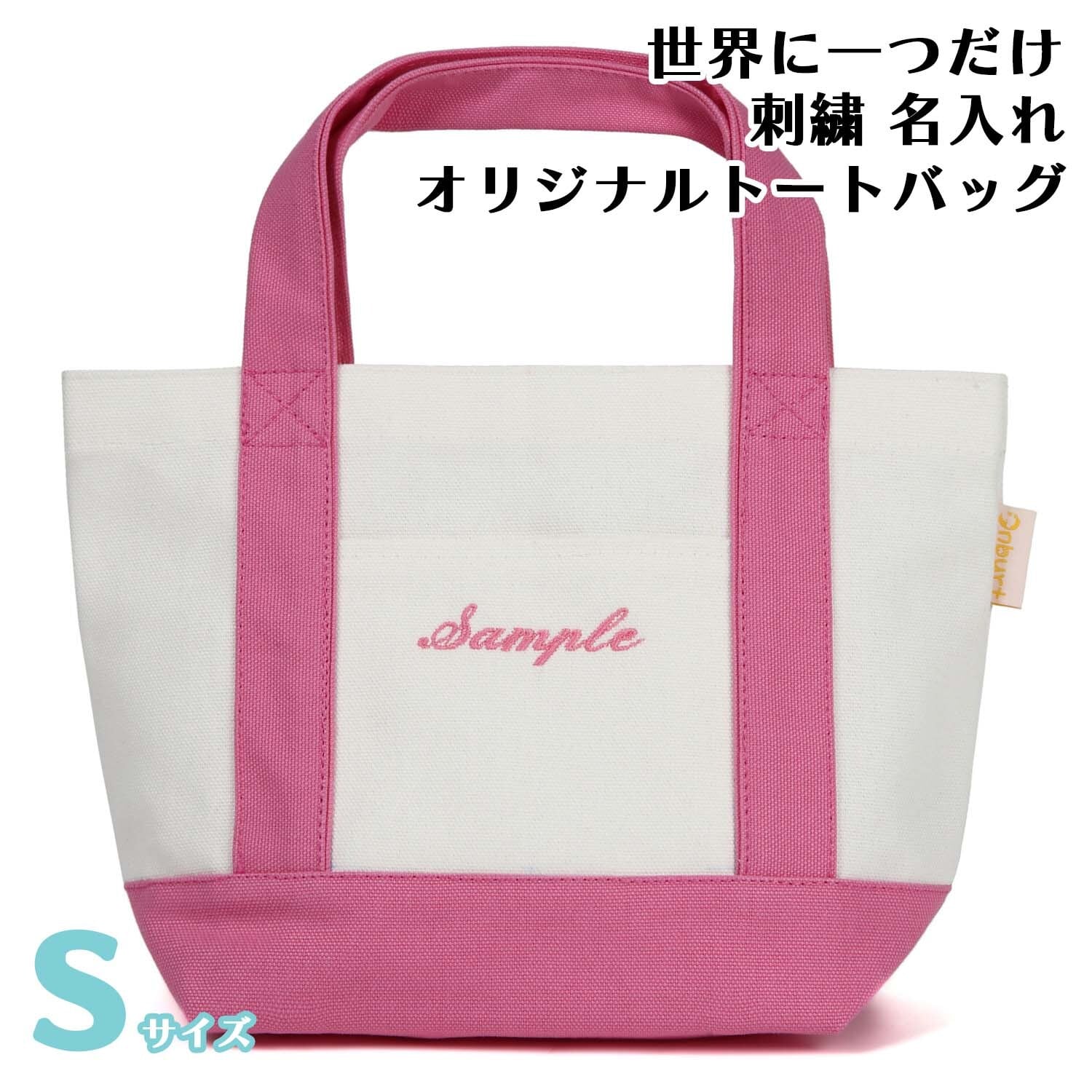 Sサイズ 【オフホワイトXピンク】 世界に一つだけ 刺繍 名入れ お散歩バッグ