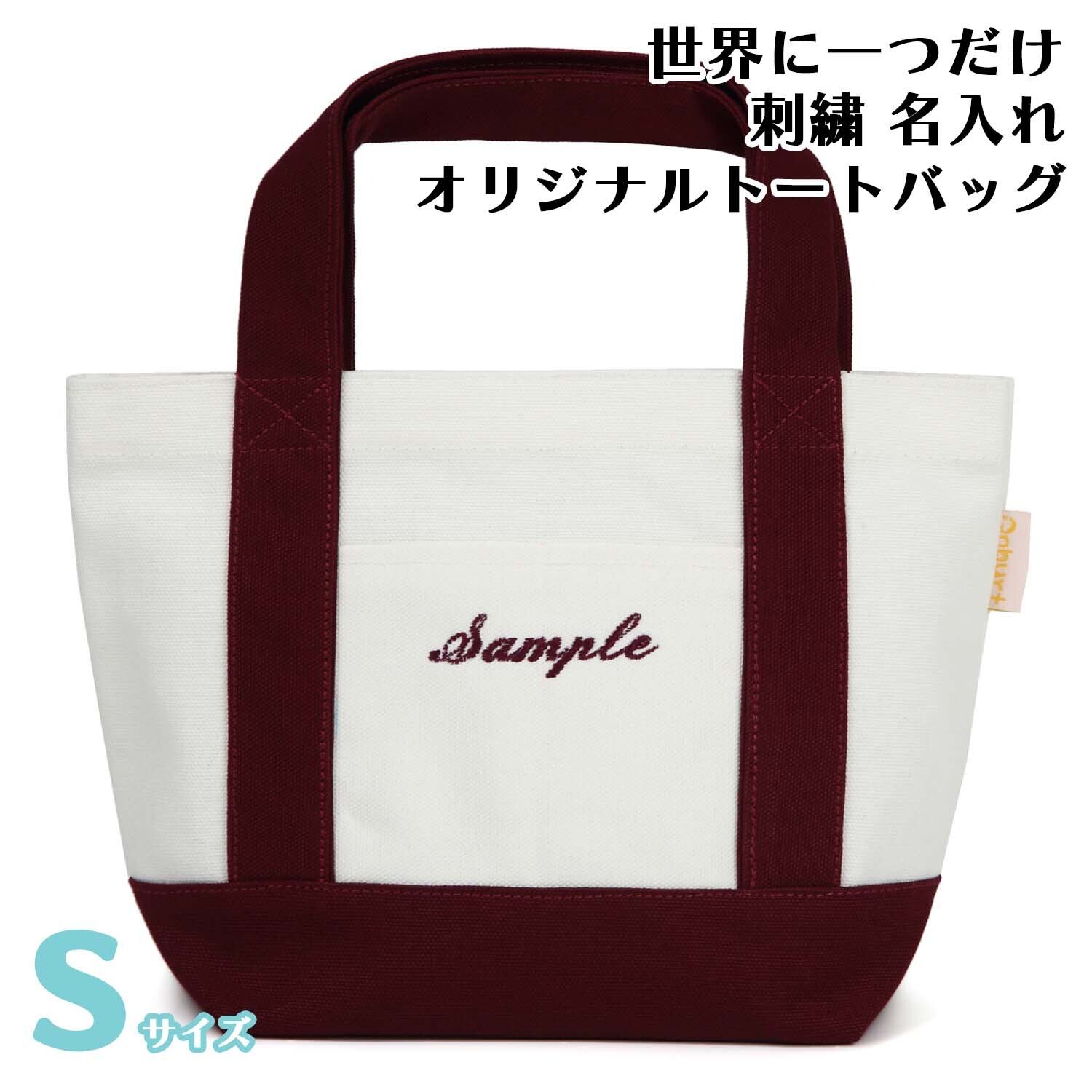 Sサイズ 【オフホワイトXワインレッド】 世界に一つだけ 刺繍 名入れ お散歩バッグ
