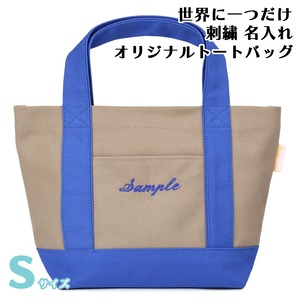 Sサイズ 【モカXブルー】 世界に一つだけ 刺繍 名入れ お散歩バッグ