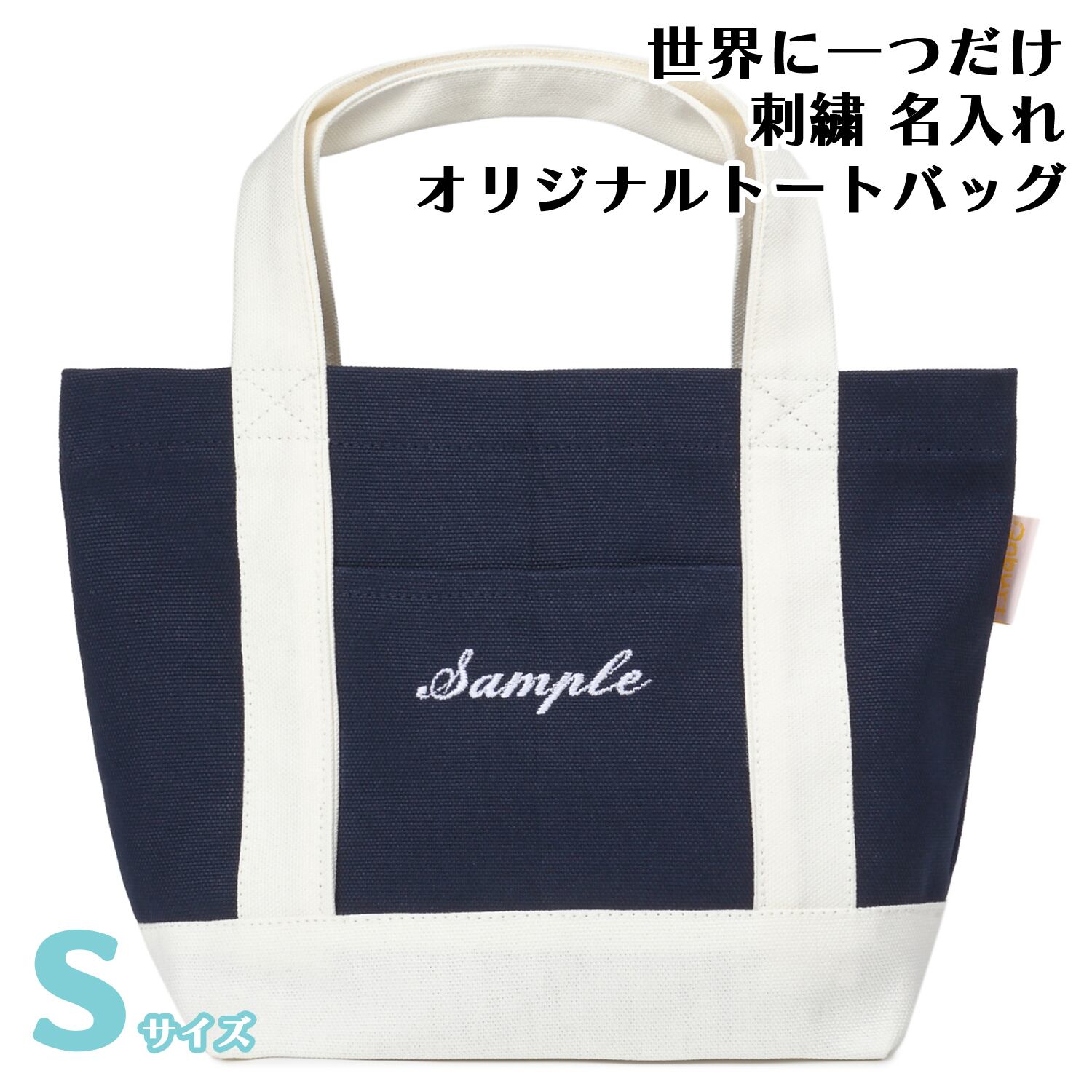 Sサイズ 【ネイビーXオフホワイト】 世界に一つだけ 刺繍 名入れ お散歩バッグ