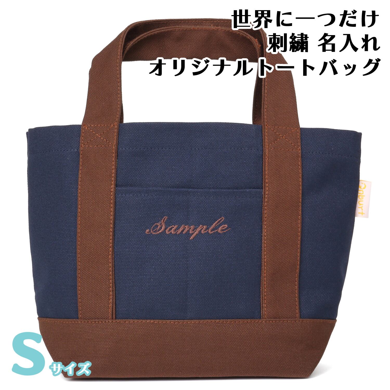 Sサイズ 【ネイビーXブラウン】 世界に一つだけ 刺繍 名入れ お散歩バッグ