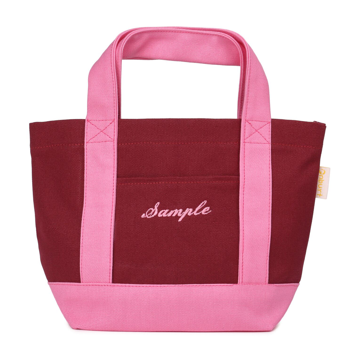 Sサイズ 【ワインレッドXピンク】 世界に一つだけ 刺繍 名入れ お散歩バッグ