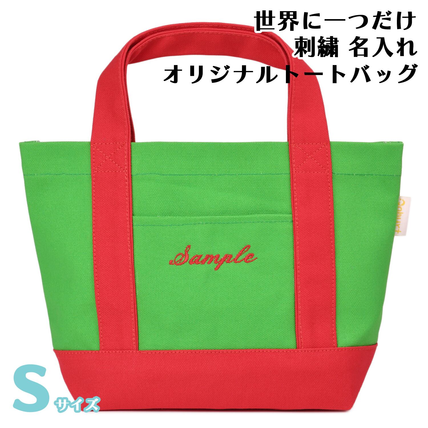 Sサイズ 【グリーンXレッド】 世界に一つだけ 刺繍 名入れ お散歩バッグ