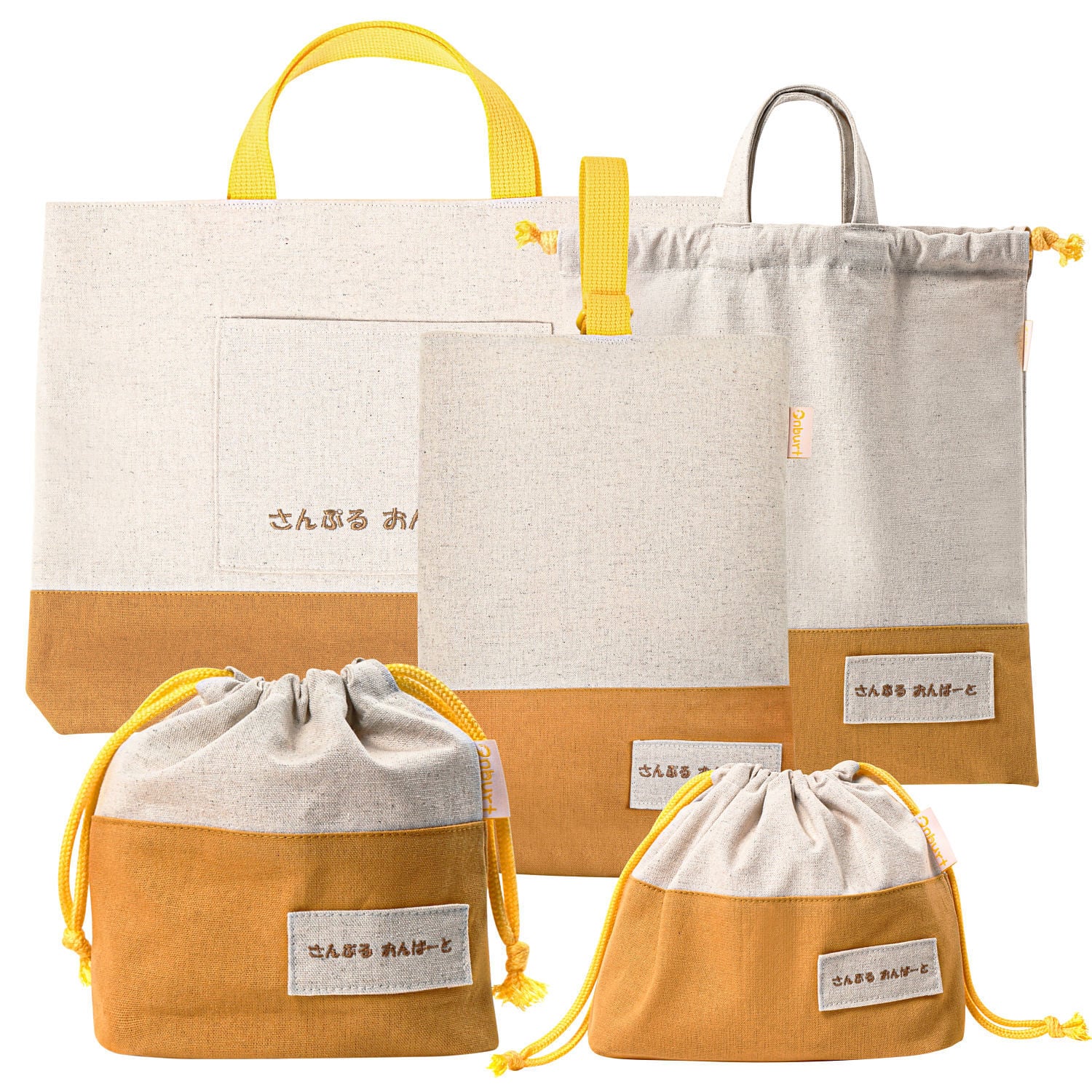 オリジナル 入学 入園 5点セット 世界に一つだけ 刺繍 名入れ ( レッスンバッグ 上履き袋 体操着袋 お弁当袋 コップ袋 ) マスタード