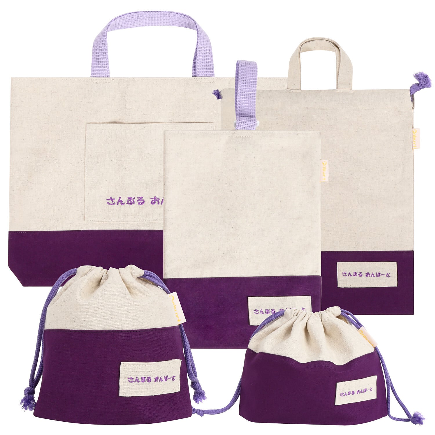 オリジナル 入学 入園 5点セット 世界に一つだけ 刺繍 名入れ ( レッスンバッグ 上履き袋 体操着袋 お弁当袋 コップ袋 ) パープル