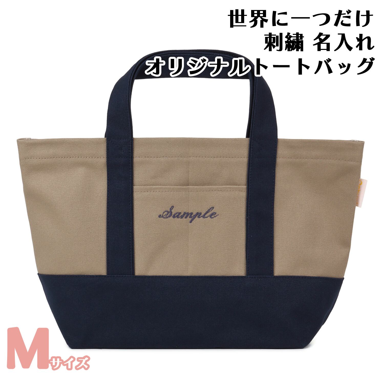 Mサイズ 【モカXネイビー】 世界に一つだけ 刺繍 名入れ お散歩バッグ