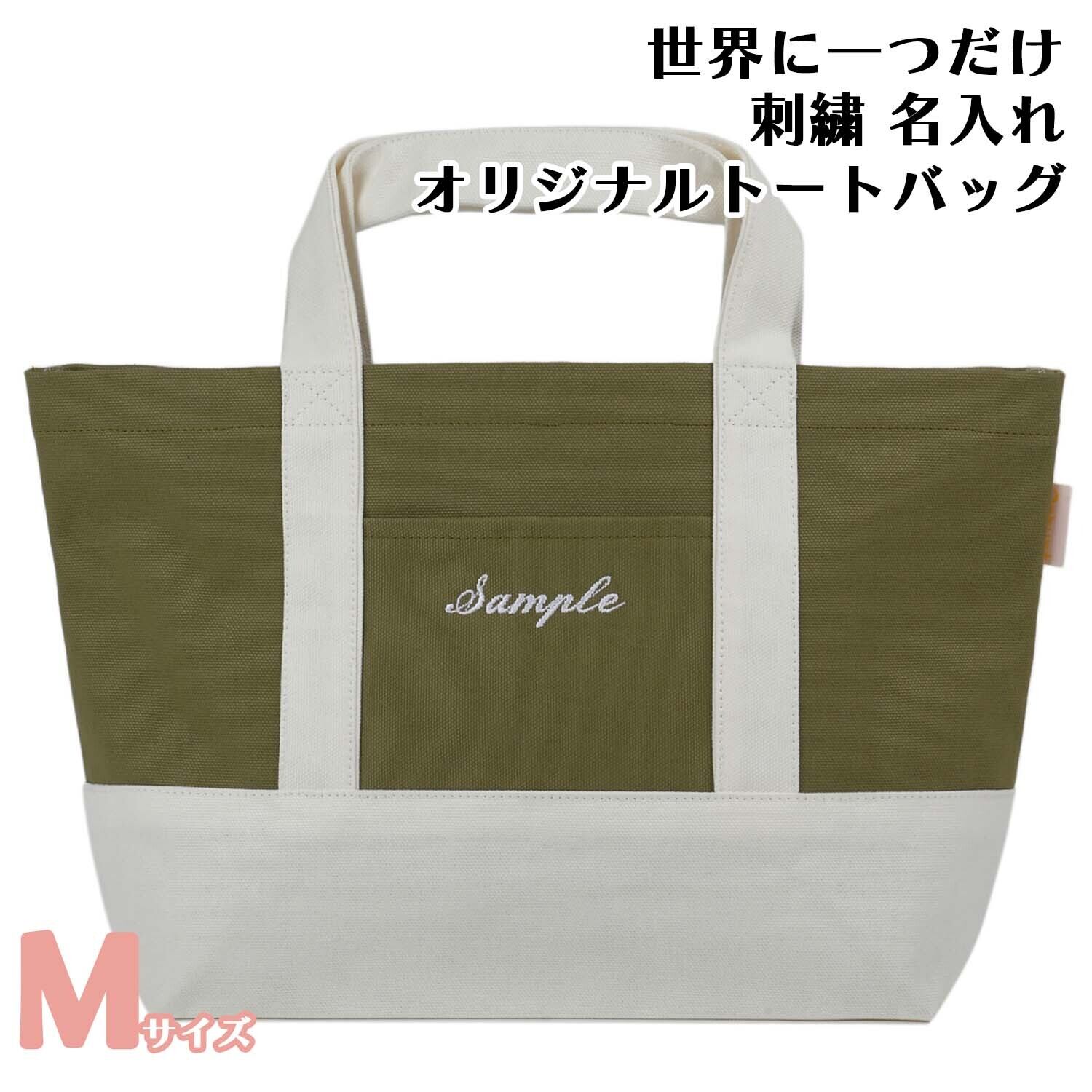 Mサイズ 【オリーブXオフホワイト】 世界に一つだけ 刺繍 名入れ オリジナル トートバッグ