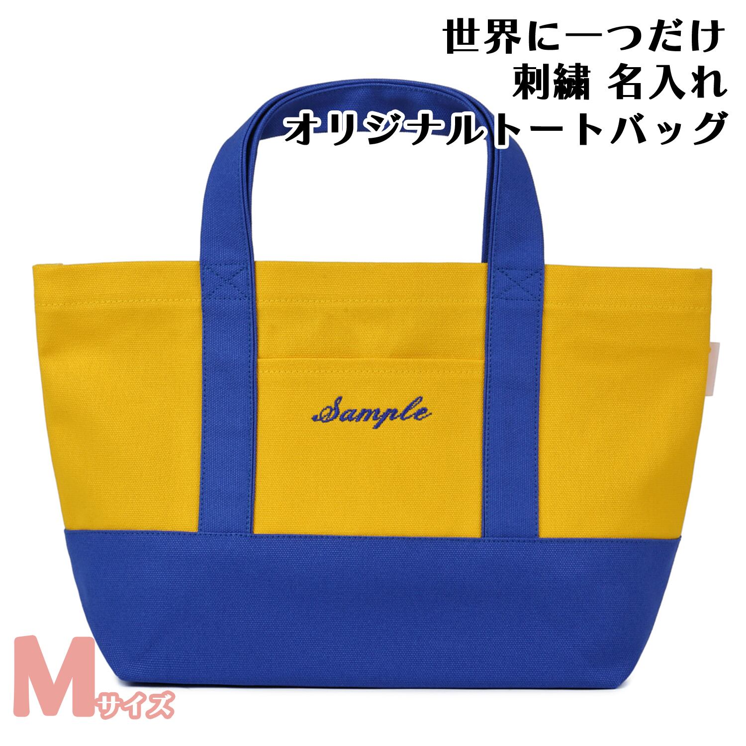 Mサイズ 【イエローXブルー】 世界に一つだけ 刺繍 名入れ お散歩バッグ