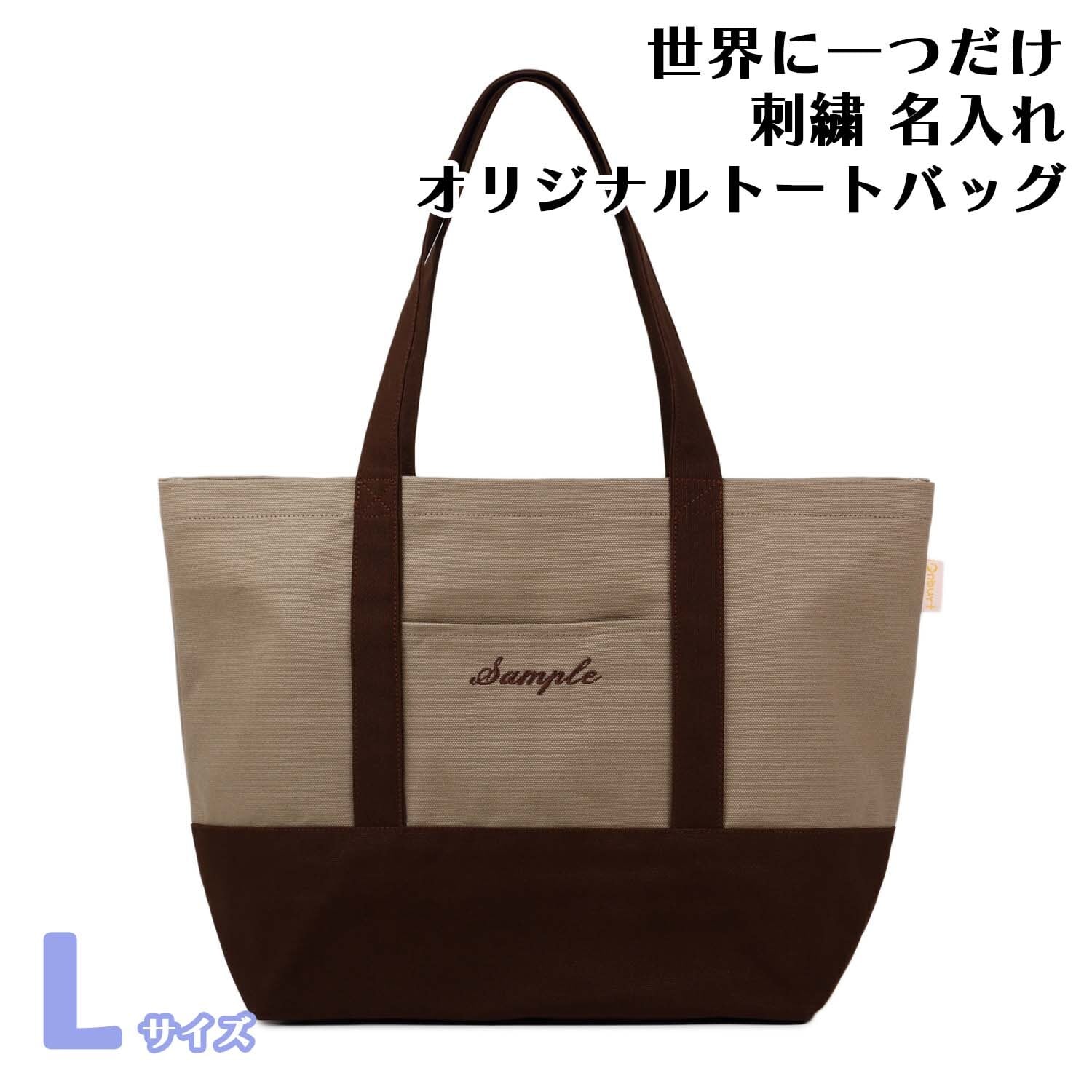 Lサイズ 【モカXブラウン】 世界に一つだけ 刺繍 名入れ オリジナル トートバッグ