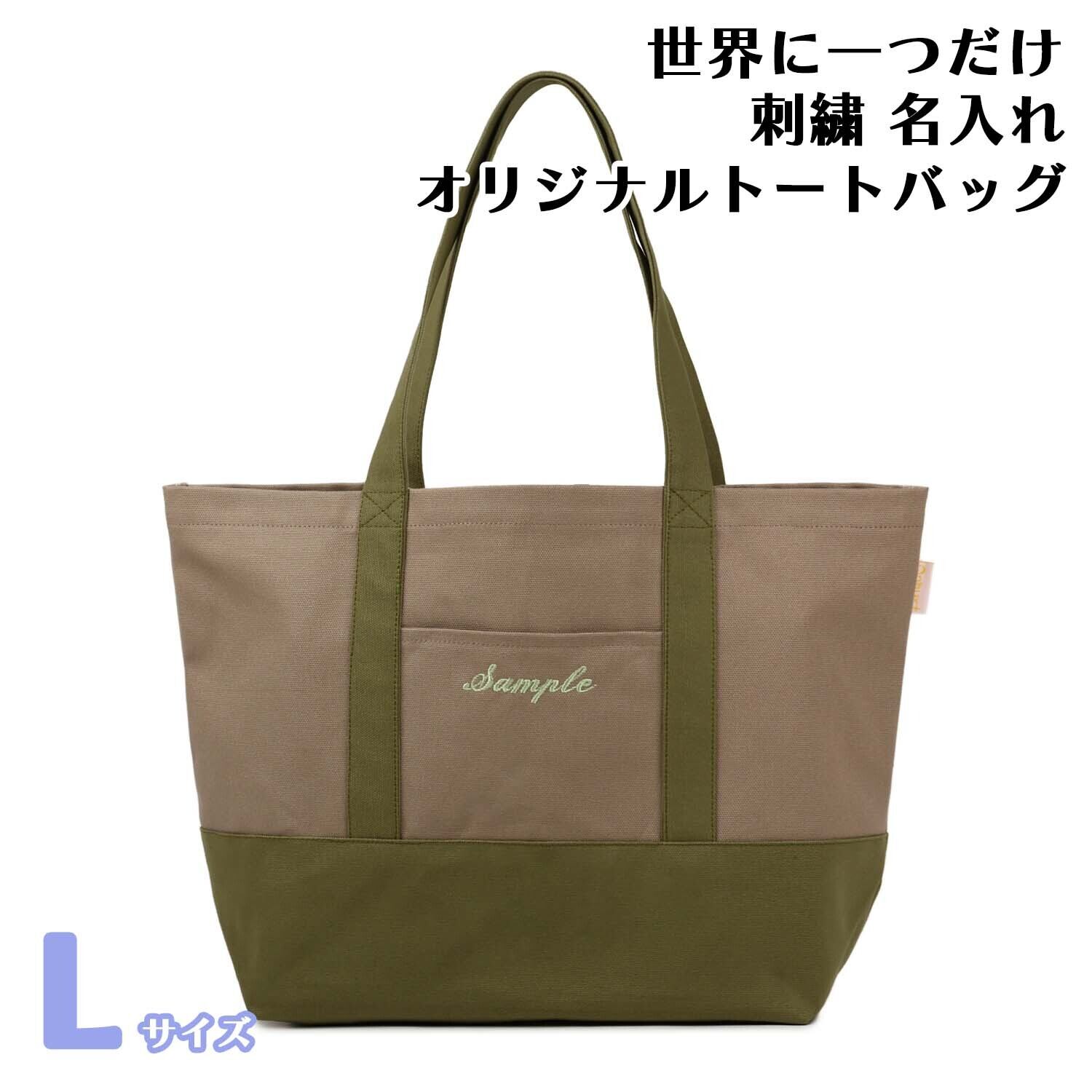Lサイズ 【モカXオリーブ】 世界に一つだけ 刺繍 名入れ オリジナル トートバッグ