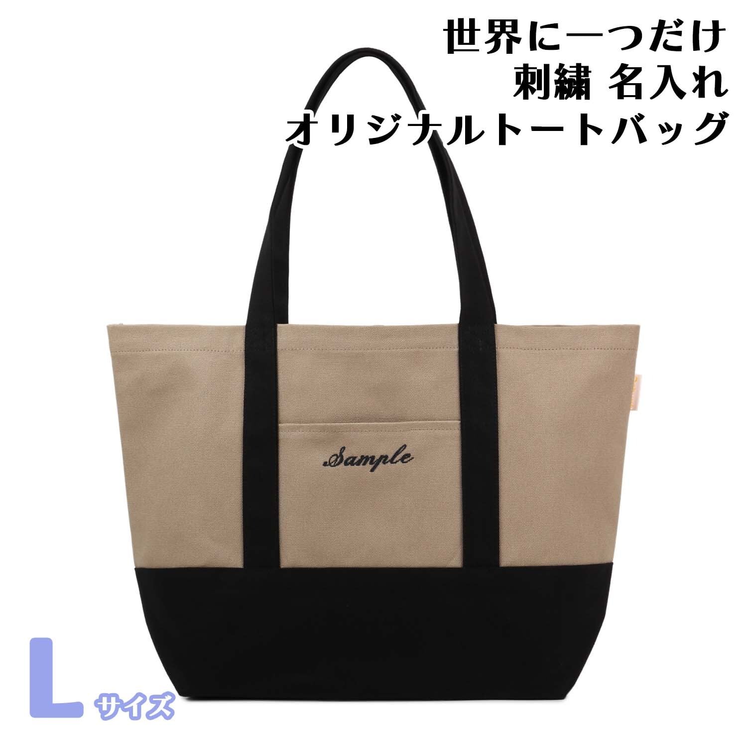 Lサイズ 【モカXブラック】 世界に一つだけ 刺繍 名入れ オリジナル トートバッグ