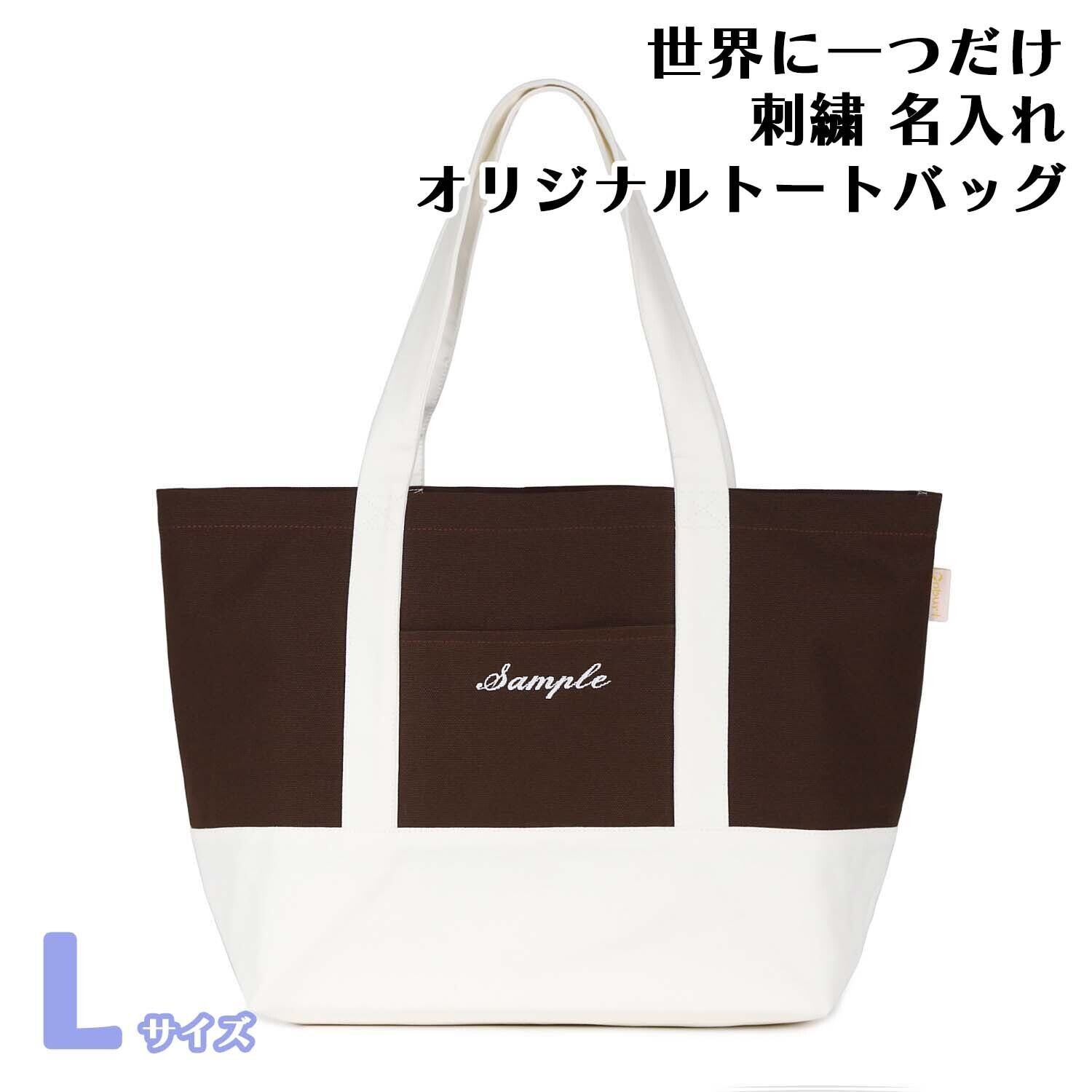 Lサイズ 【ブラウンXオフホワイト】 世界に一つだけ 刺繍 名入れ オリジナル トートバッグ