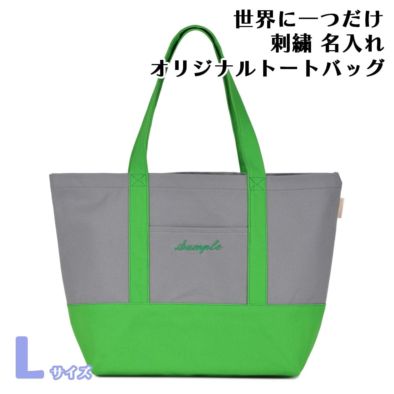 Lサイズ 【グレーXグリーン】 世界に一つだけ 刺繍 名入れ オリジナル トートバッグ