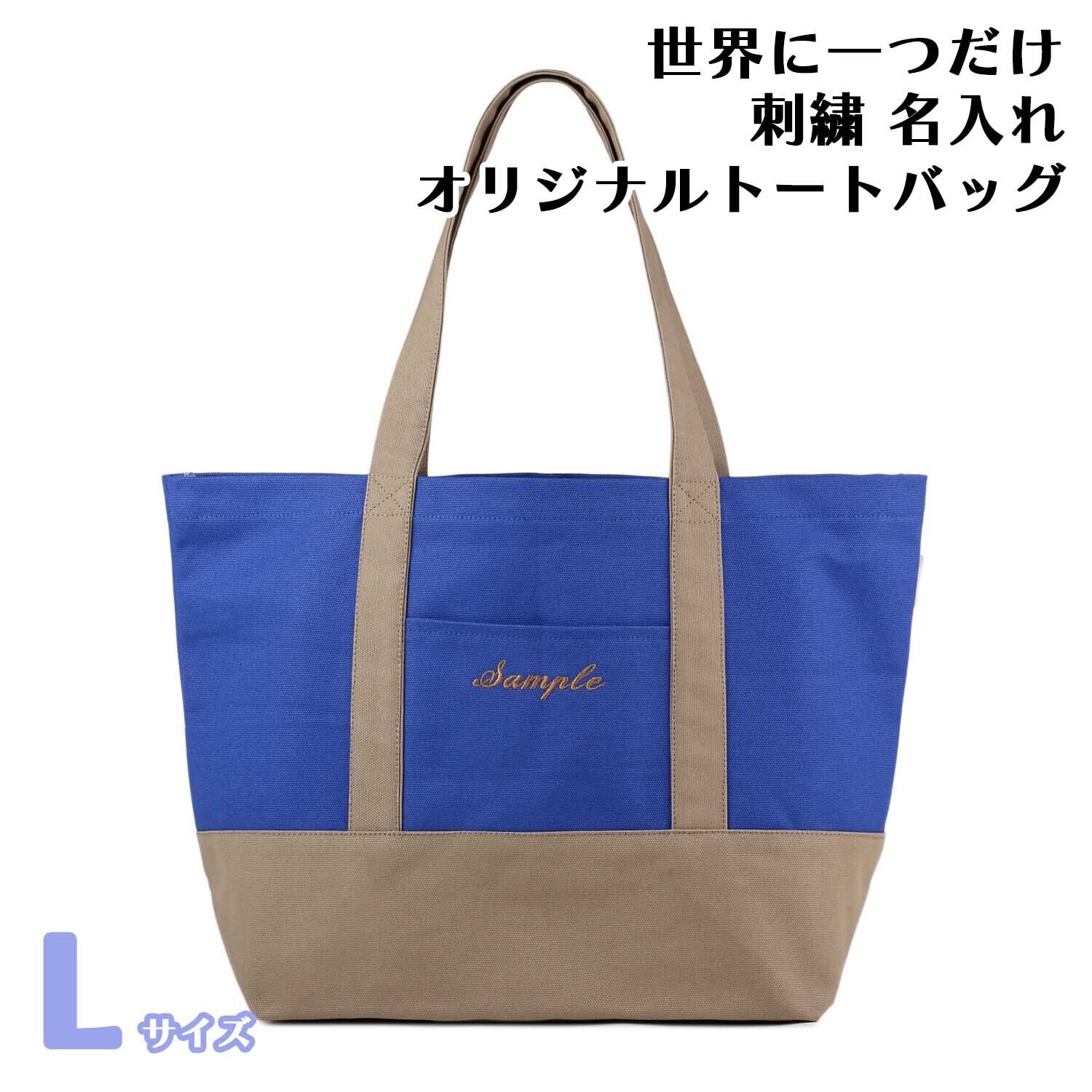 Lサイズ 【ブルーXモカ】 世界に一つだけ 刺繍 名入れ オリジナル トートバッグ