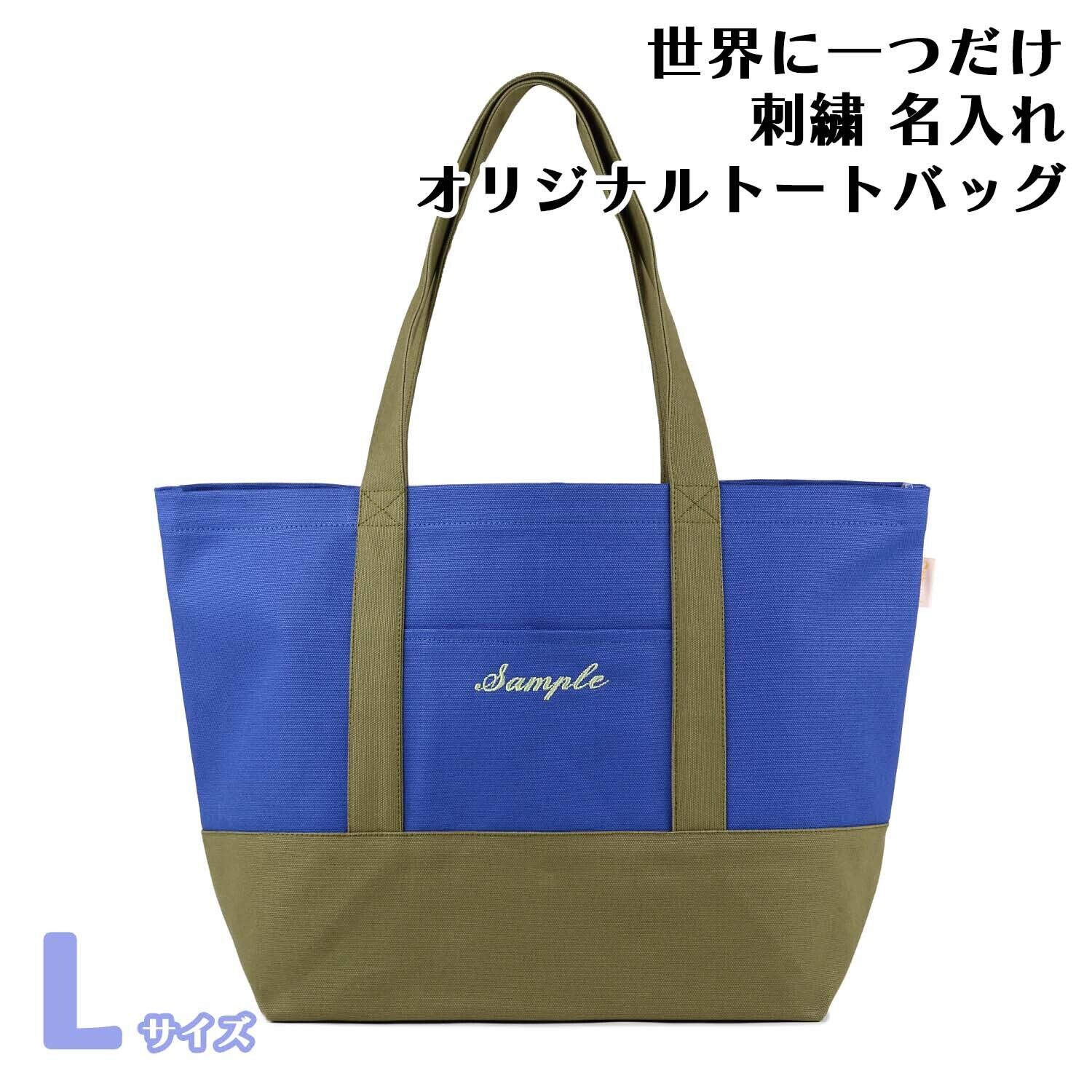 Lサイズ 【ブルーXオリーブ】 世界に一つだけ 刺繍 名入れ オリジナル トートバッグ