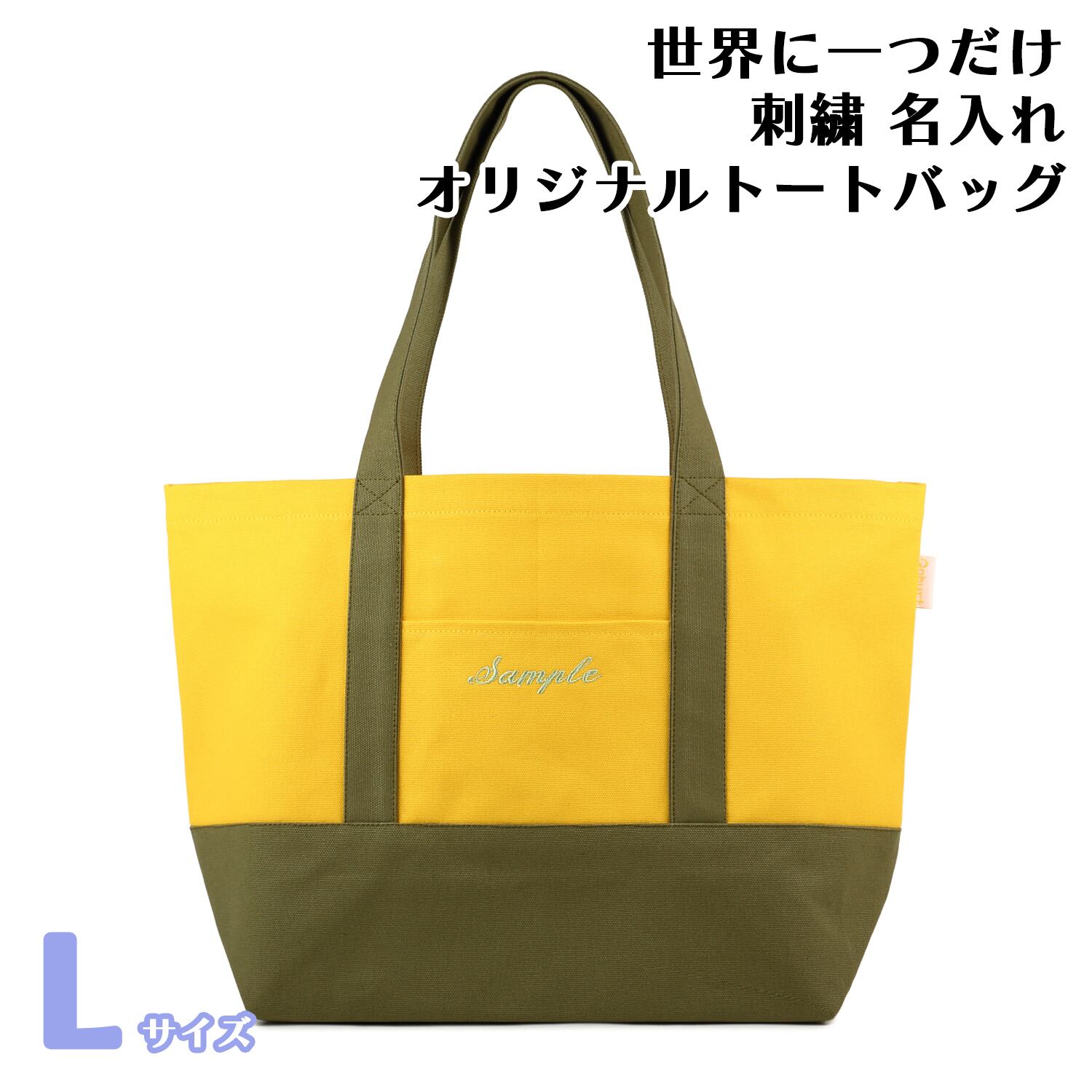 Lサイズ 【イエローXオリーブ】 世界に一つだけ 刺繍 名入れ オリジナル トートバッグ