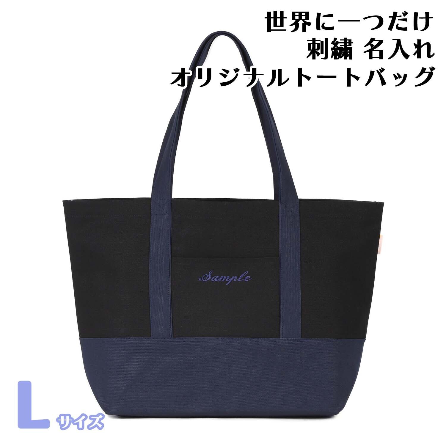 Lサイズ 【ブラックXネイビー】 世界に一つだけ 刺繍 名入れ オリジナル トートバッグ
