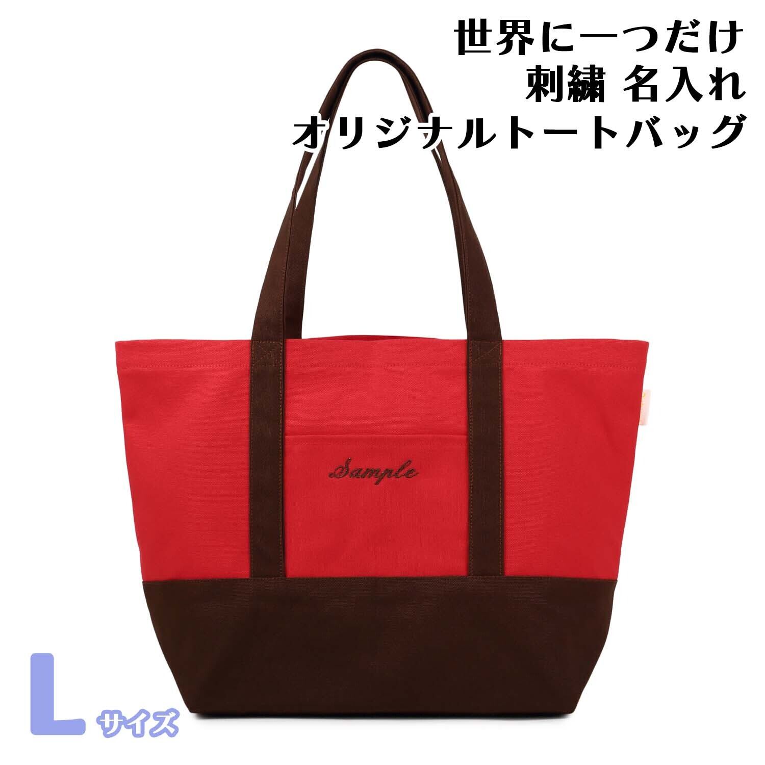 Lサイズ 【レッドXブラウン】 世界に一つだけ 刺繍 名入れ オリジナル トートバッグ