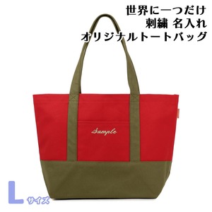 Lサイズ 【レッドXオリーブ】 世界に一つだけ 刺繍 名入れ オリジナル トートバッグ