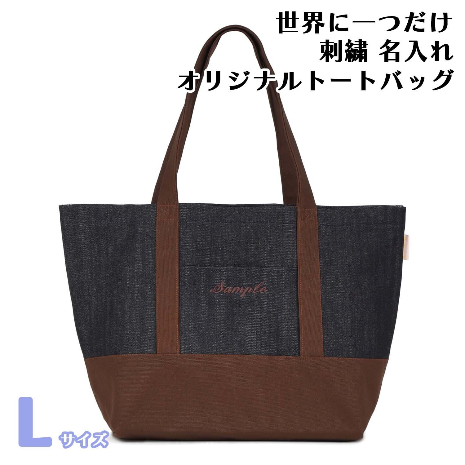 Lサイズ 【デニムXブラウン】 世界に一つだけ 刺繍 名入れ オリジナル トートバッグ