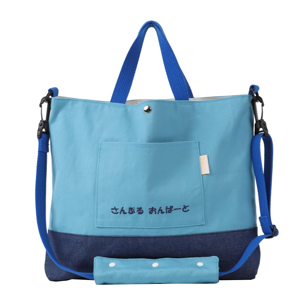 オリジナル 入学 入園 世界に一つだけ 刺繍 名入れ レッスンバッグ ショルダー付 デニム × スカイブルー