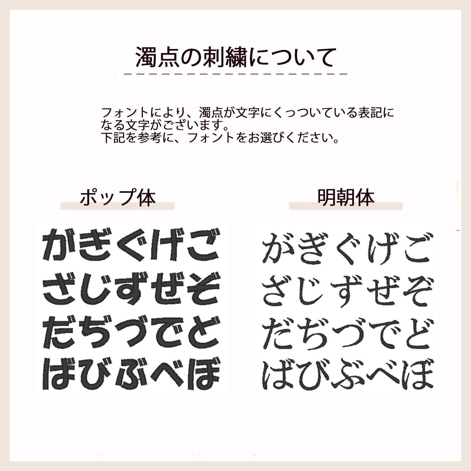 【名入れ】 お好きな文字(お名前)を12文字まで刺繍いたします。