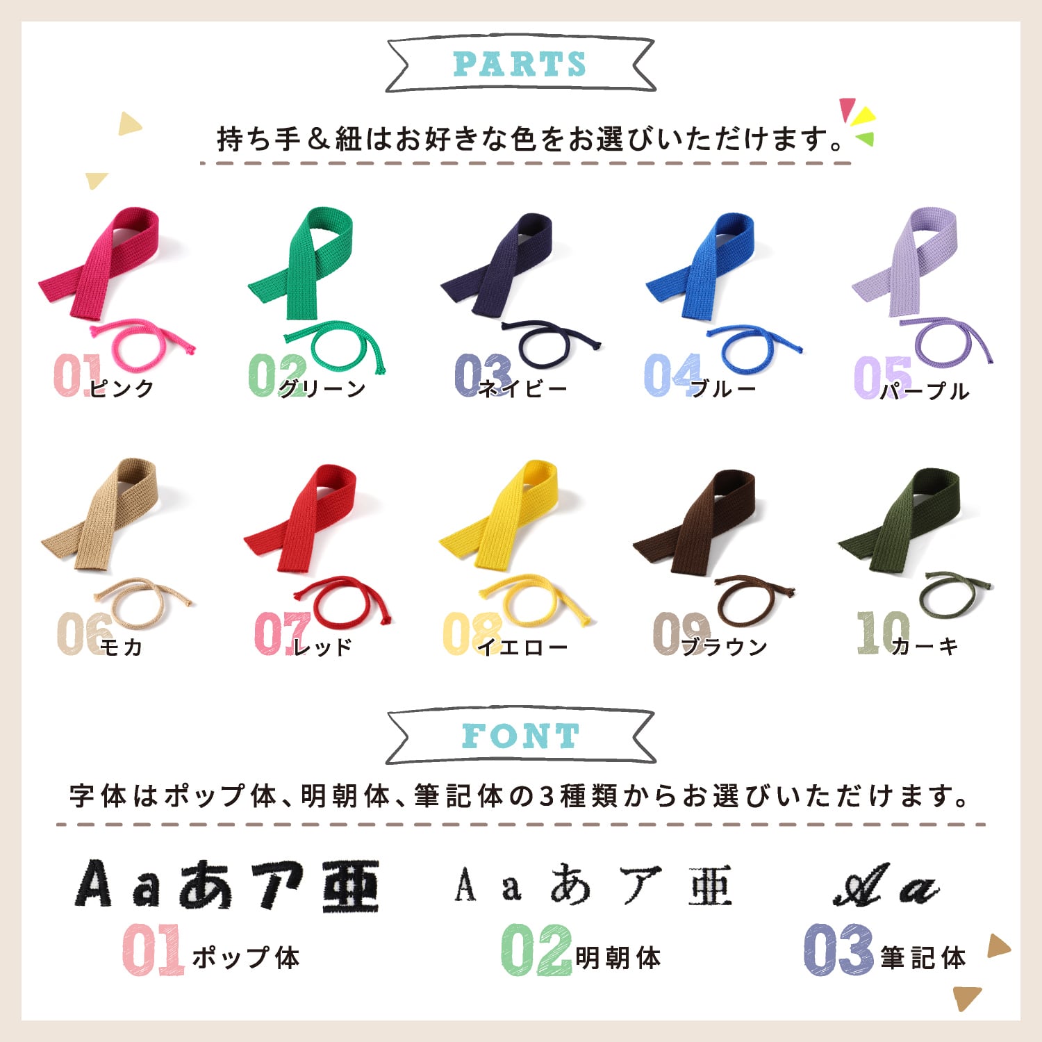 【刺繡】 お好きな刺繍糸の色、字体が選択可能。